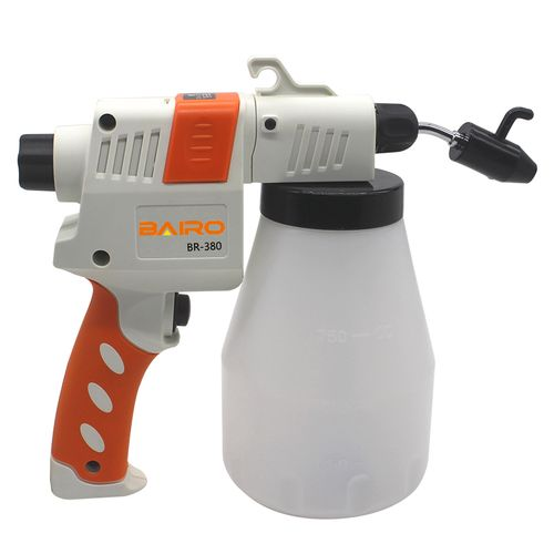 With the combination of a spray gun head and a hose, the stain removal gun uses controllable air pressure to rinse or dry stains.