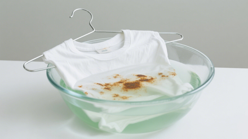 Apply the stain remover to the stain → soak the garment thoroughly in a cleaning powder solution.