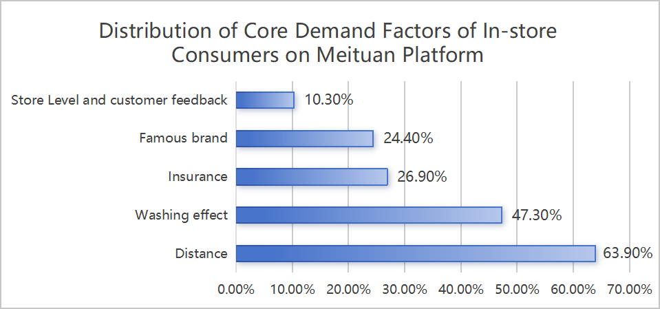 The core processes of going to the offline stores and making an order online are different so customers have different choices under different circumstances. Taking offline services as an example, the distance from the stores to the customers has been the top considered factor. Then, the second high is price. Compared with online laundry, the first consideration for consumers in offline stores is the cleaning effect. Factors such as cleaning time, and door-to-door delivery are considered behind.