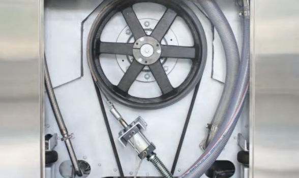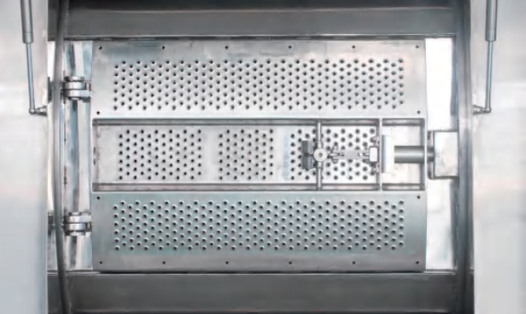 The door is made of 304 stainless steel and equipped with a safety lock and interlock control system. This system provides reliable safety protection: the door cannot be opened while the machine is running, and the machine cannot start if the door is not properly closed. Additionally, when one side door is open, the other side remains locked to ensure isolation.
